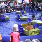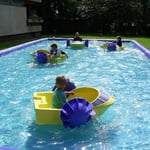 Bei Bedarf kann auch ein aufblasbares Wasserbecken in der Größe 8 m x 6 m zur Verfügung gestellt werden, indem bis zu 5 Boote gleichzeitig ihre Runden drehen können.